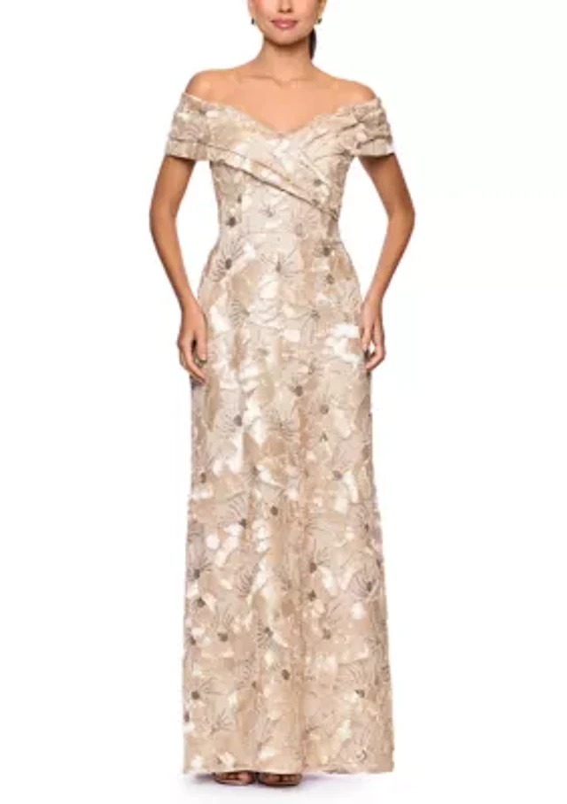 Lara Women's Embroidered, Cape Sleeve A-line Gown