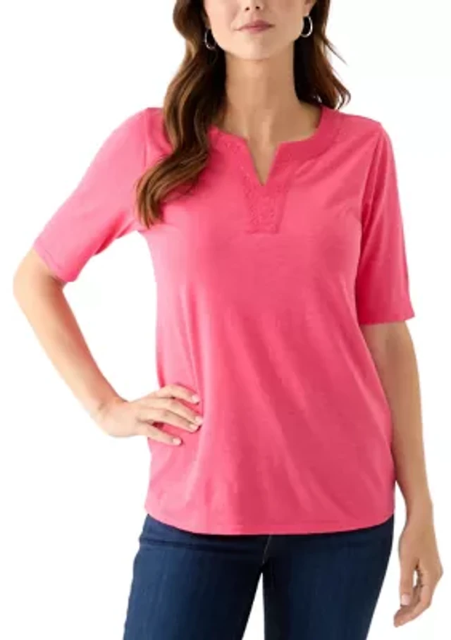 Babydoll Rayon Crepe Embroidered Lace-Up Top