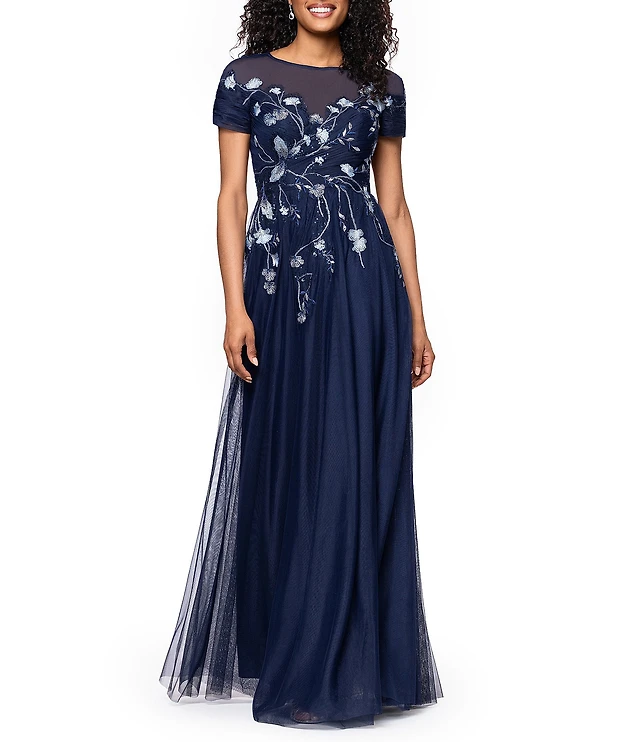Cameron Sequin Embroidered A-Line Formal Dress
