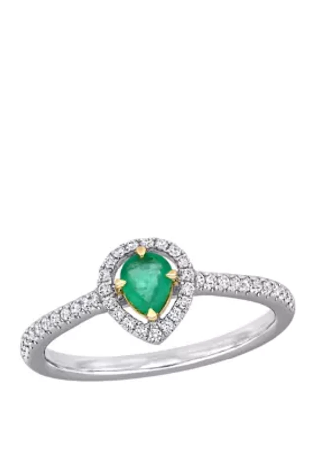 Emerald-Cut Natural Emerald & Diamond Ring 1/10 ct tw 14K Yellow Gold