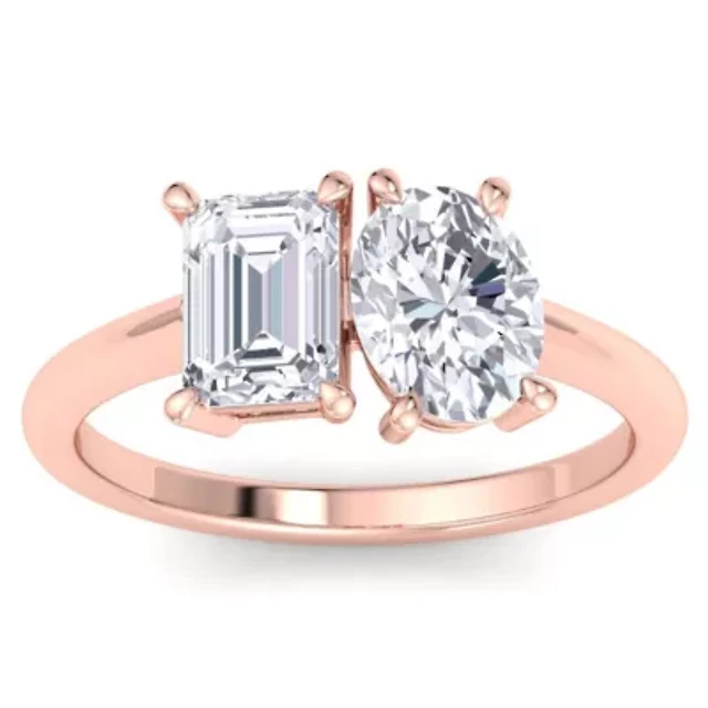 Lab Created 2 ct. t.w. Grown Diamond Toi Et Moi Ring, Emerald-Heart, 14K Gold