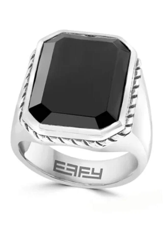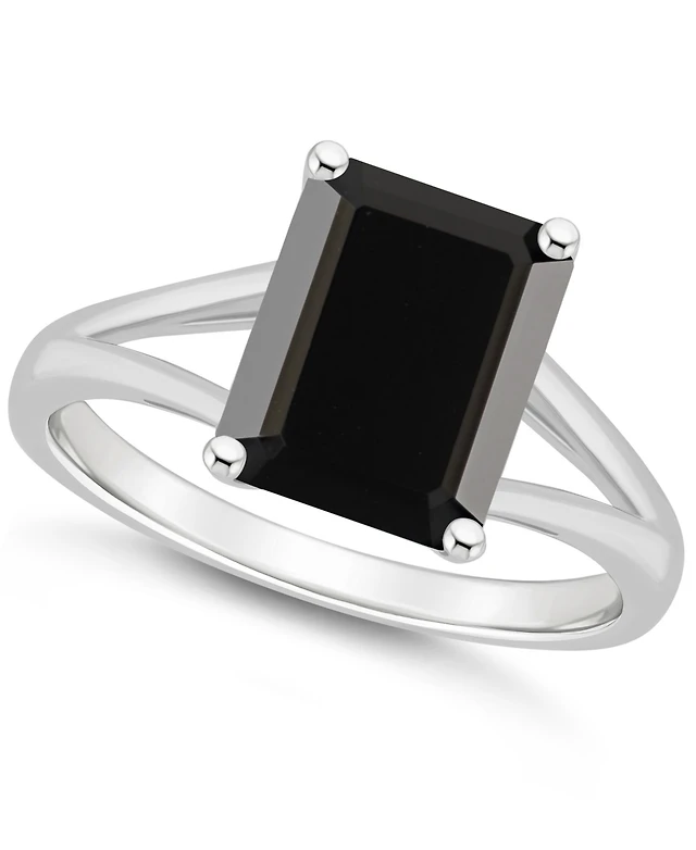 Men's Black Emerald Cut Onyx Ring In Sterling Silver