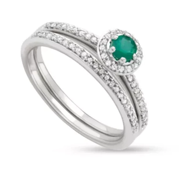 Sterling Silver CZ Halo Emerald Bridal Ring
