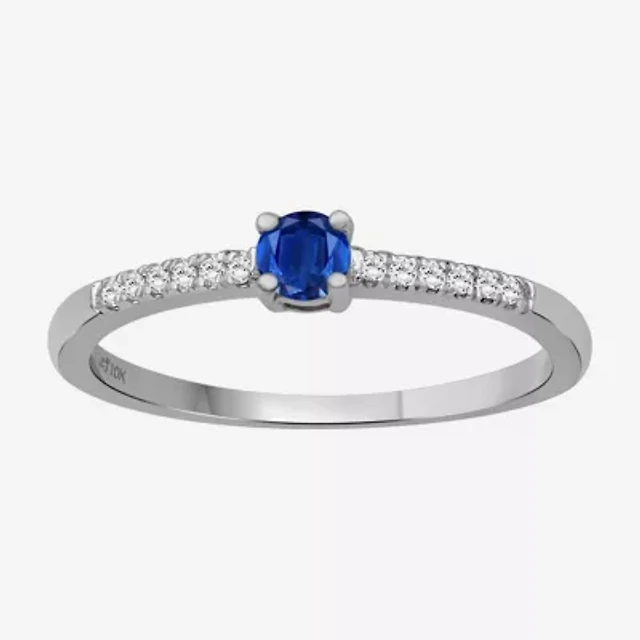 Modern Bride Gemstone Womens Diamond Accent Genuine Blue Aquamarine 10K White Gold Engagement Ring