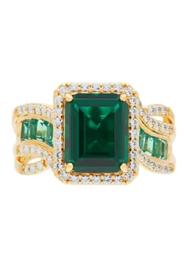 Lab Grown Emerald and Lab Grown White Sapphire Ring in Gold Over Silver