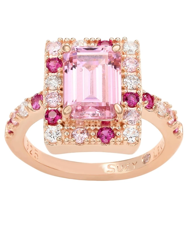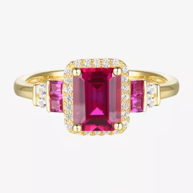 7.44 TCW Emerald-Cut Multicolor Cubic Zirconia Yellow Gold-Plated Ring