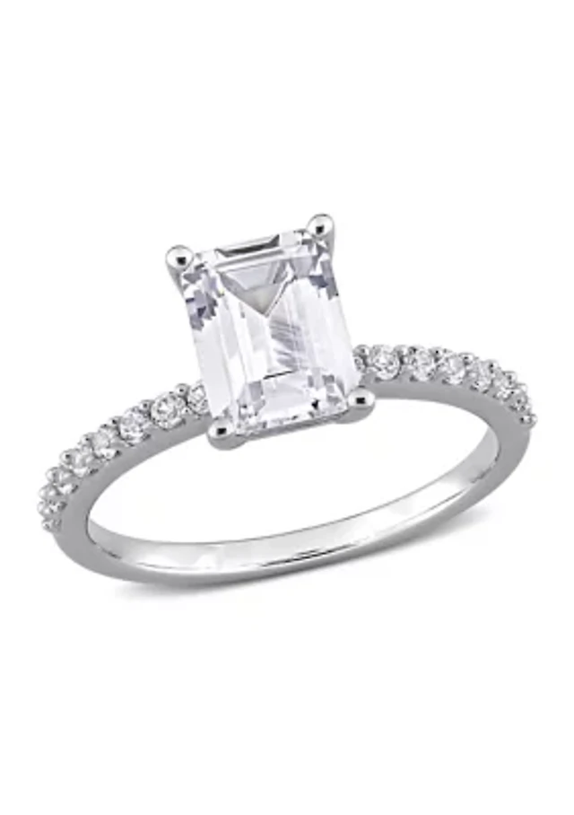 Suzy Levian Sterling Silver Emerald Cut Sapphire & Created White Halo Ring