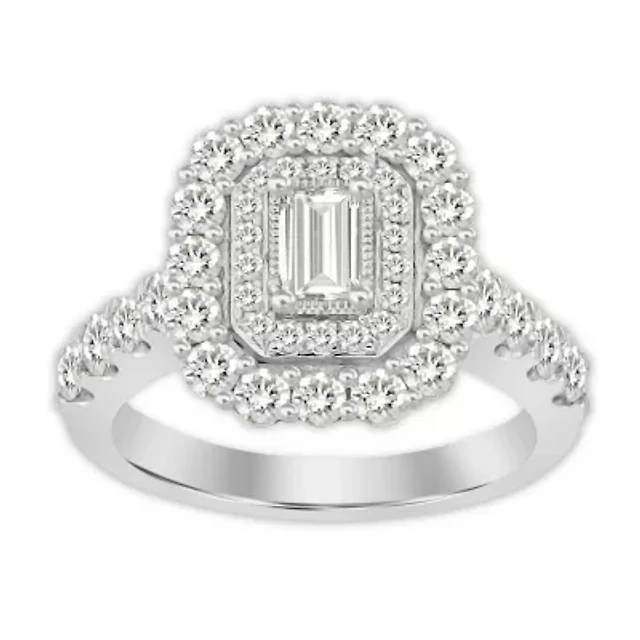 1-1/2 CT. T.w. Emerald-Cut Diamond Double Frame Engagement Ring in 14K White Gold (I/Si2)