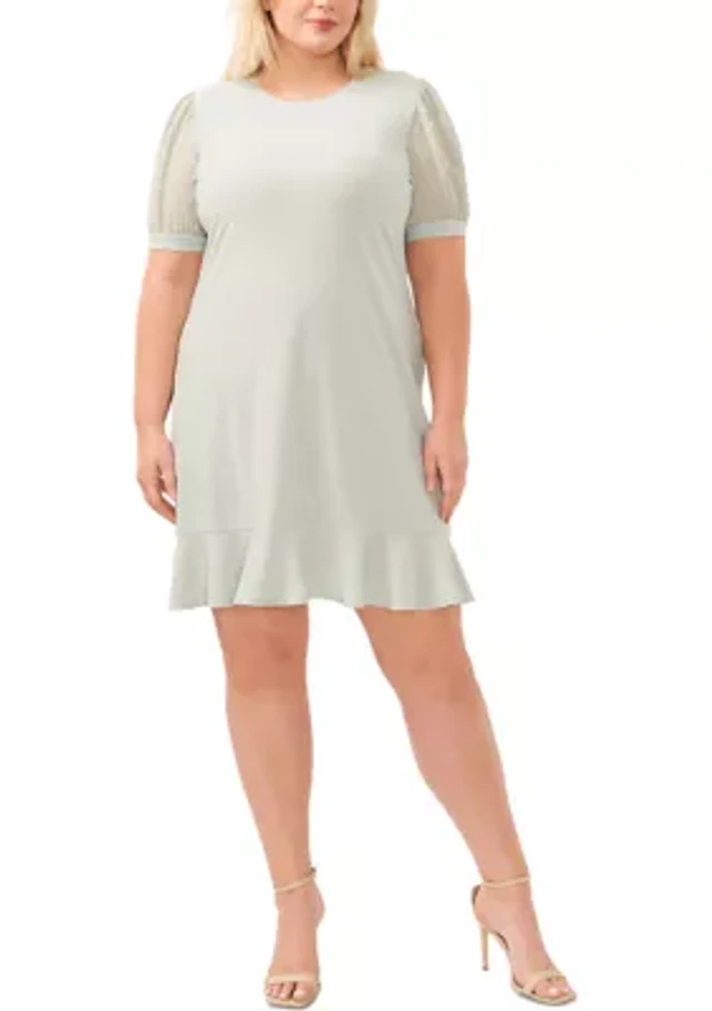 Melonie T Womens Plus Elbow Sleeve Midi Fit + Flare Dress