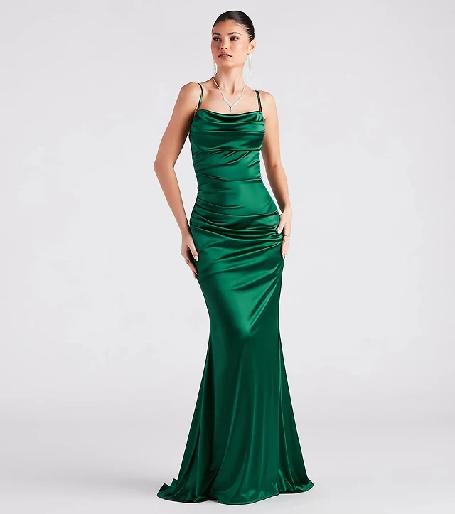 Emma Rhinestone Trim Satin Formal Midi Dress