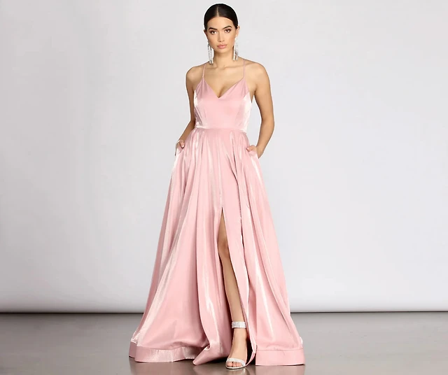 Kaylie Iridescent Rhinestone Sheer Mesh Formal Dress