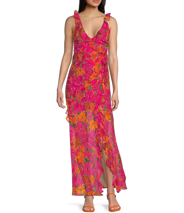 Amabella Floral Foiled High Low Dress