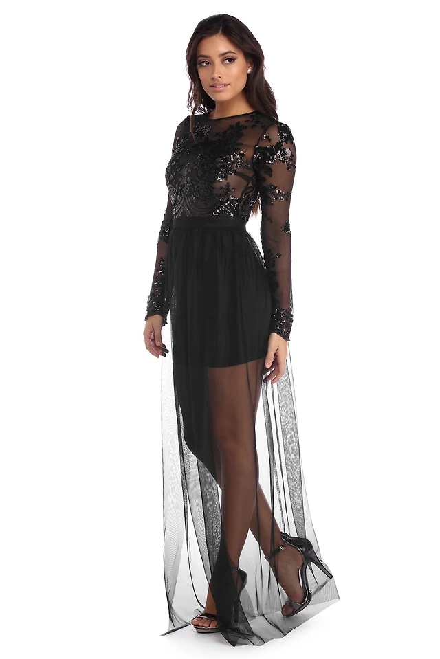 Kaelyn Sequin V-Neck Slit Formal Dress