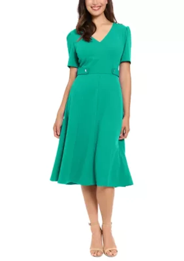 Calvin Klein Women's Bubble Hem Belted Crewneck Dress