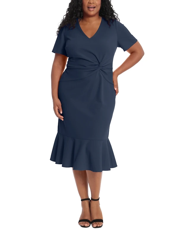 Buxom Couture Plus Cut-out Shoulder Peplum Midi Dress