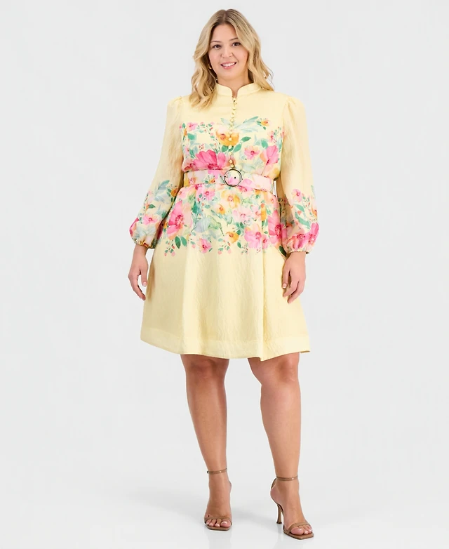 City Chic Women's Color Wrap Print Dress