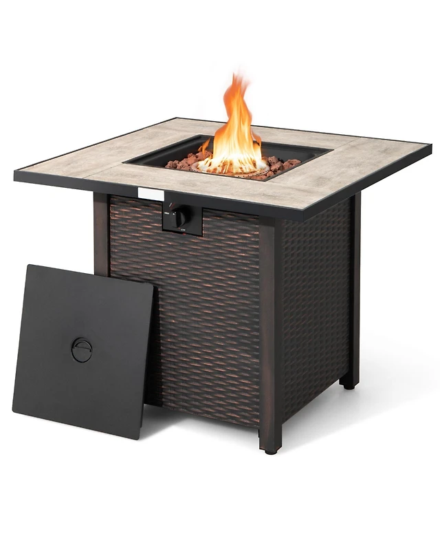 Costway 32'' Square Propane Fire Pit Table for Patio w/Lava Rocks Rain Cover 50,000 Btu