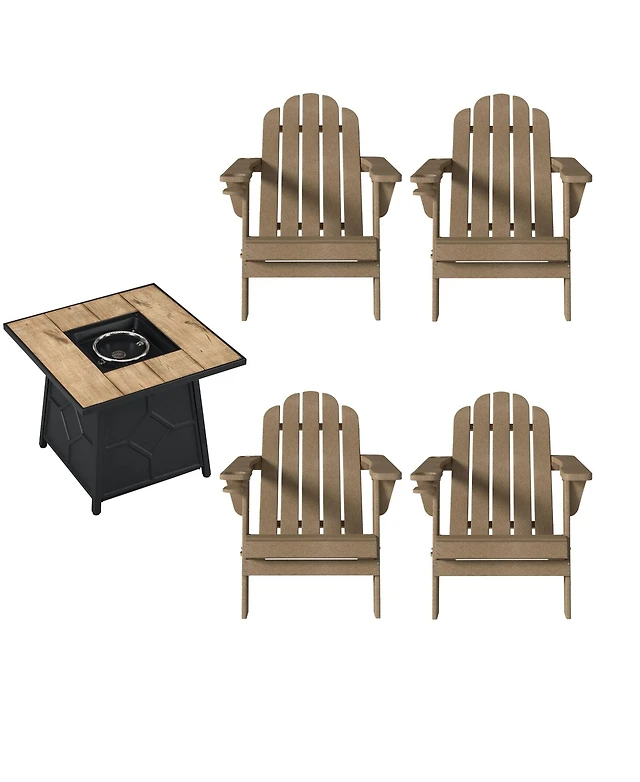 Flynama 33 Inch Outdoor Iron Square Propane Fire Pit Brushed Brown 50000 Btu Tank Inside No Assembly