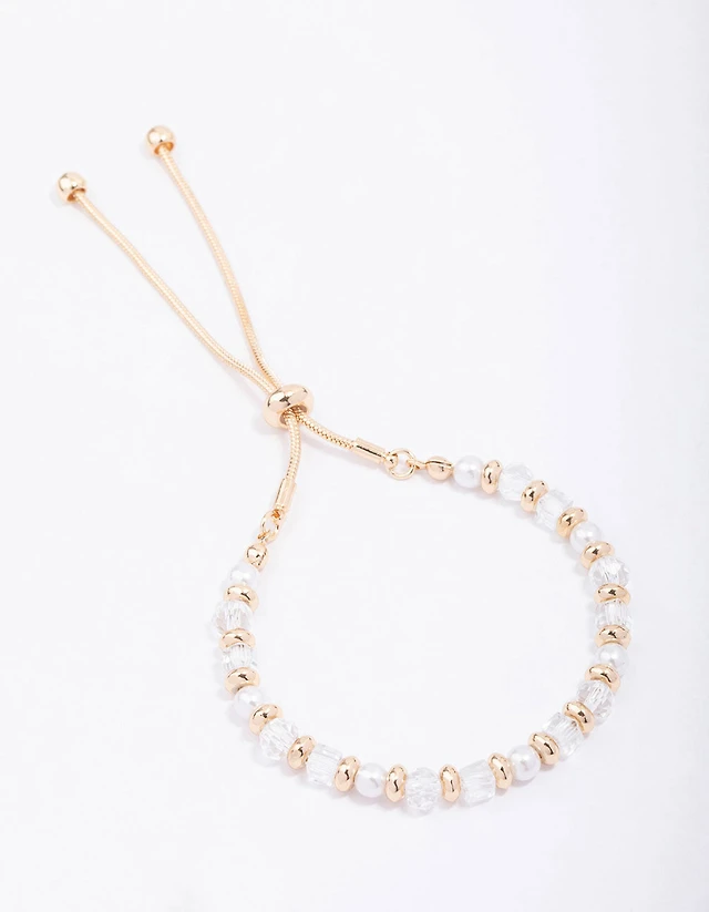 Gold Mixed Pearl & Facet Toggle Bracelet