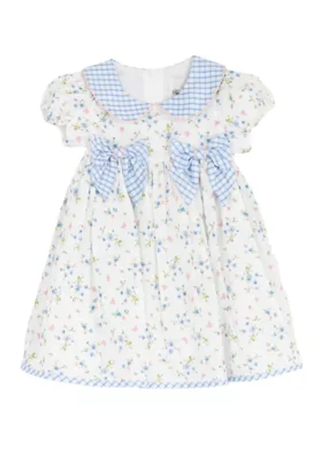 Hope & Henry Little and Big Girls' Short Sleeve Quilted Dress with Eyelet Collar