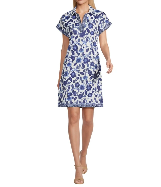 NIC + ZOE Water Lilies Camille Shirt Collar Cap Sleeve Dress