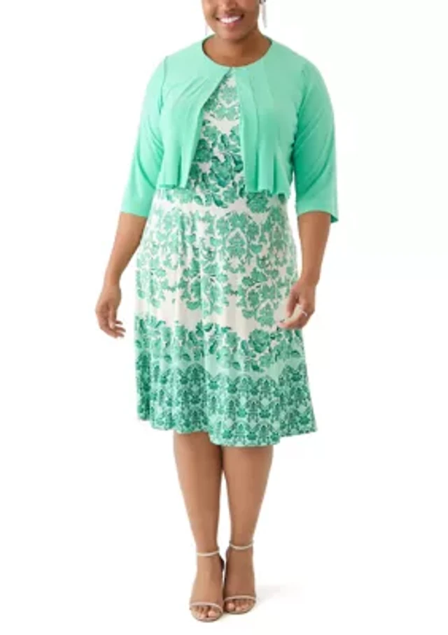 Plus 3/4 Sleeve Jacket and Dress Set