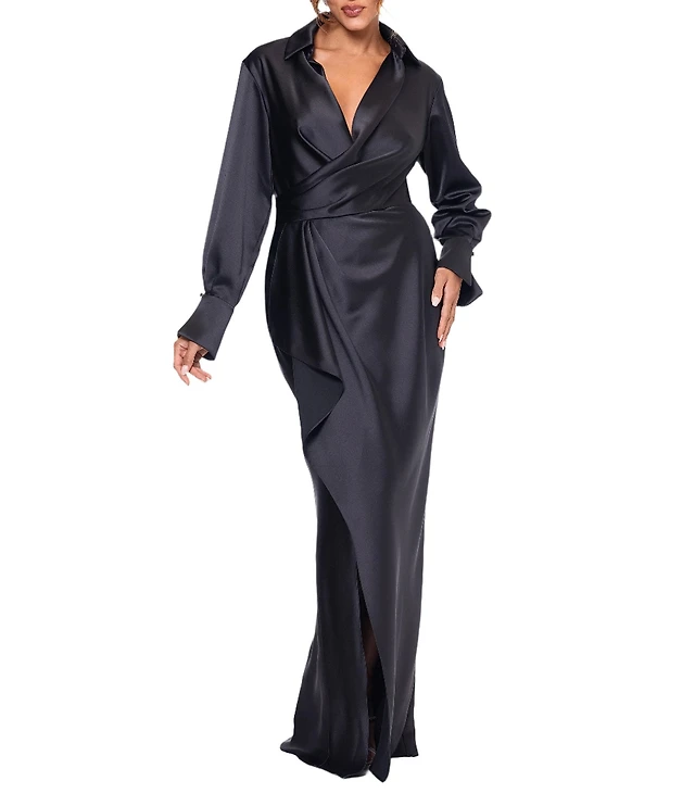 Be by CHETTA B Womens Plus Long Sleeve Abstract Shift Dress