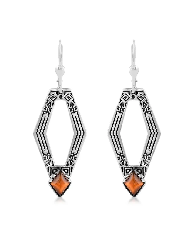 American West Jewelry Sterling Silver and Geometric Shape Tiger's Eye Gemstone Lever Back Earrings