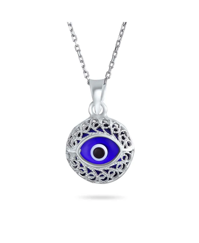 Bling Jewelry Spiritual Protection Amulet Round Circle Moving Floating Blue Evil Eye Filigree Charm Pendant Necklace Sterling Silver