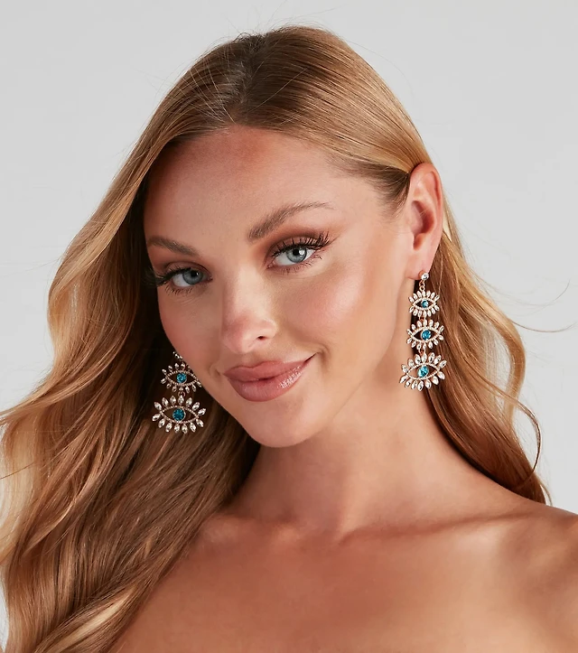 Unwritten Cubic Zirconia and Crystal Celestial Evil Eye and Moon Layered Necklace Set