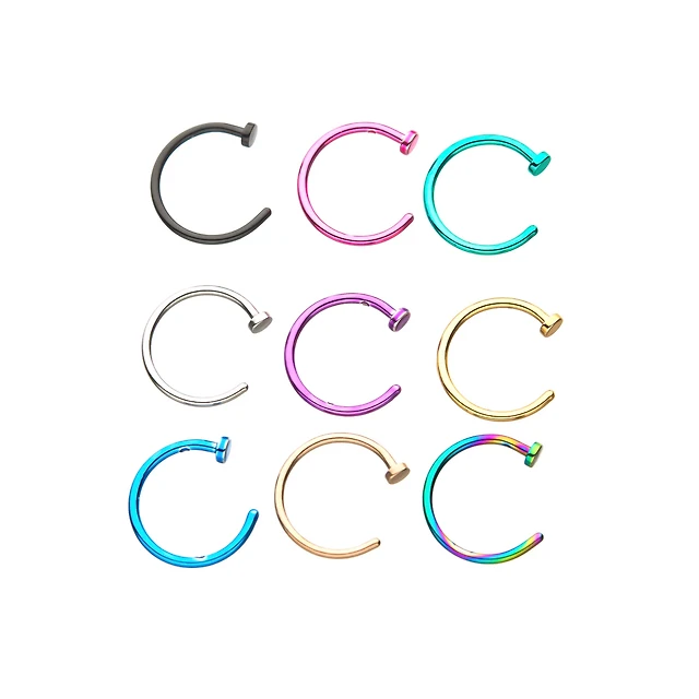 Multi-Pack Colored Half Hoop Nose Rings 9 Pack - 20 Gauge
