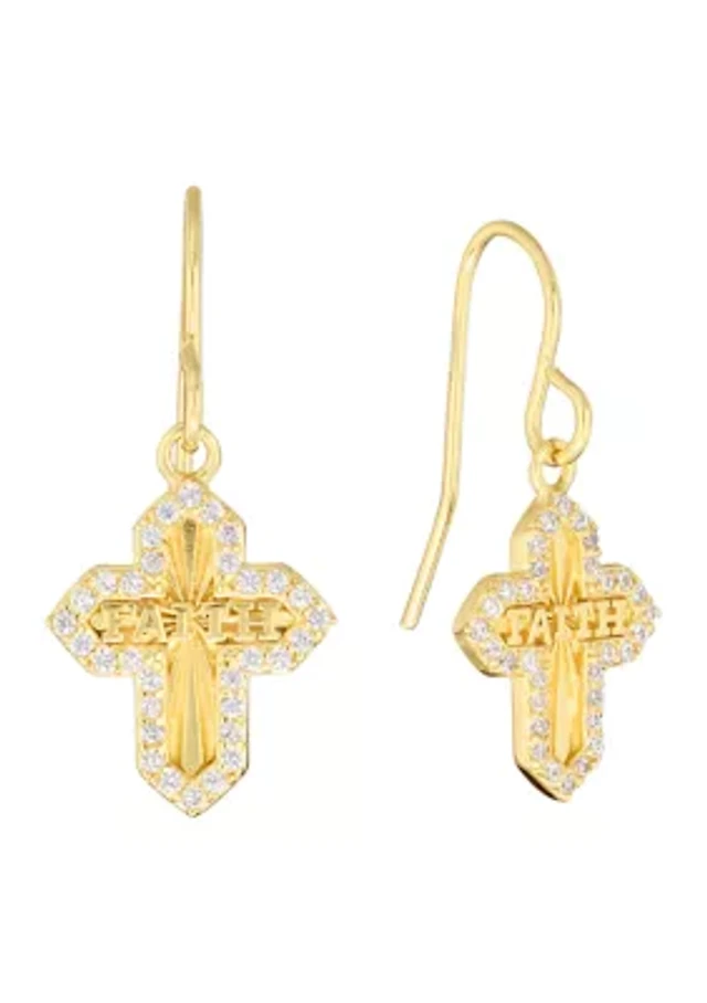 Cubic Zirconia Cross Drop Earrings in 10K Gold