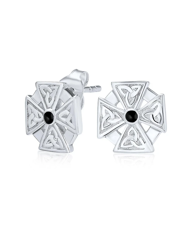 Bling Jewelry Masonic Knight Templar Cross Stud Earrings with Onyx in Sterling Silver
