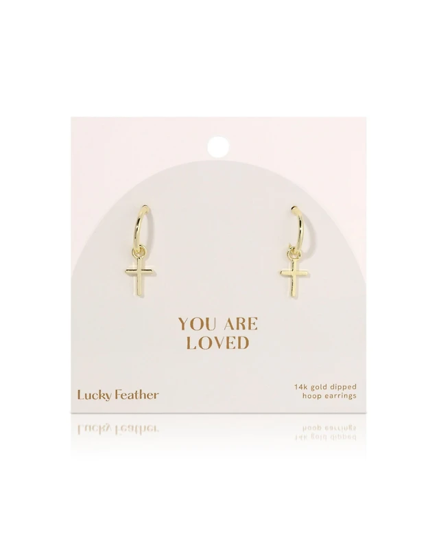 14K Dipped Hoop Crystal Cross Drop Earrings