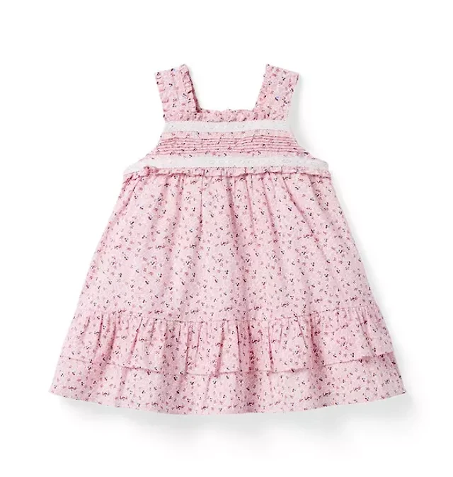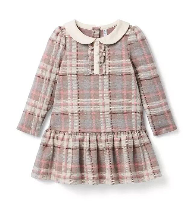 Girls 7-16 Gingham Asymmetrical Bodice Dress with Smocked Waist and Tiered Skirt
