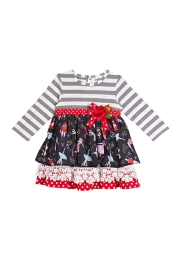 Baby Girls Striped Loopback Fleece Dress & Bloomer