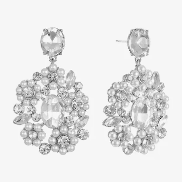 Monet Jewelry Womens Glass Simulated Pearl Oval Hypoallergenic Drop Earrings