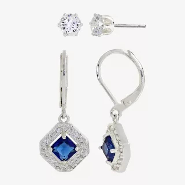 Sparkle Allure Womens Blue Crystal Square 2 Pair Earring Set