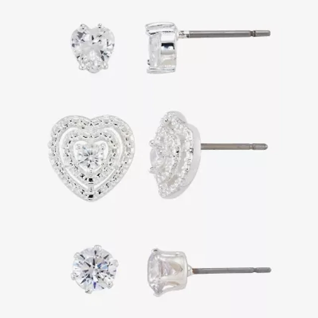 Sparkle Allure Womens Cubic Zirconia Heart 3 Pair Earring Set