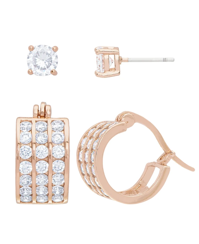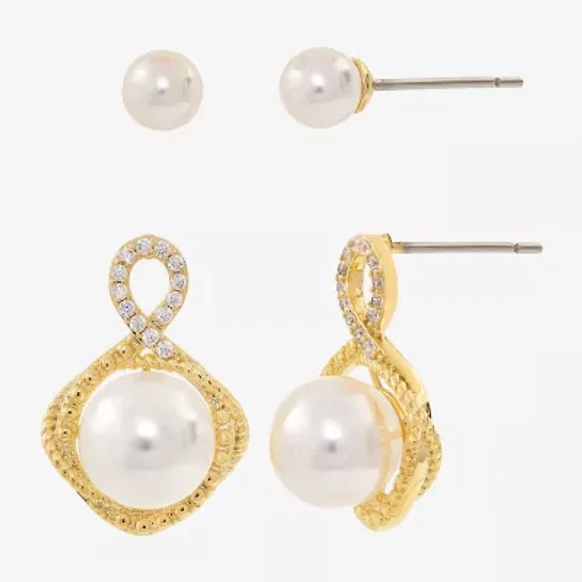Womens White Cubic Zirconia Sterling Silver 2 Pair Earring Set
