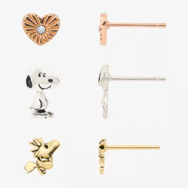 Sparkle Allure Days Of The Week Bee Womens Cubic Zirconia 14K Gold Over Brass Bow Flower 7 Pair Earring Set