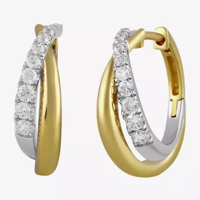 Womens 1/2 CT. T.W. Natural White Diamond 14K Gold Over Silver 23.8mm Hoop Earrings