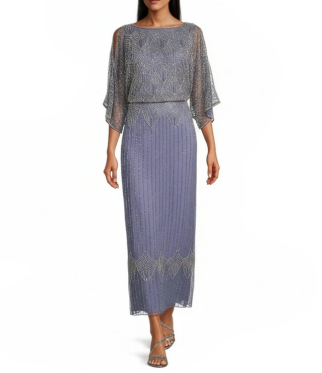Mac Duggal Crepe Embellished Cap Sleeve Fitted Midi Dress