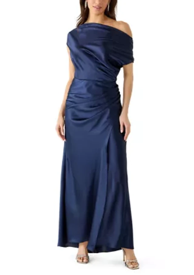 Maggy London Metallic Jersey Cowl Neck Cap Sleeve Gown