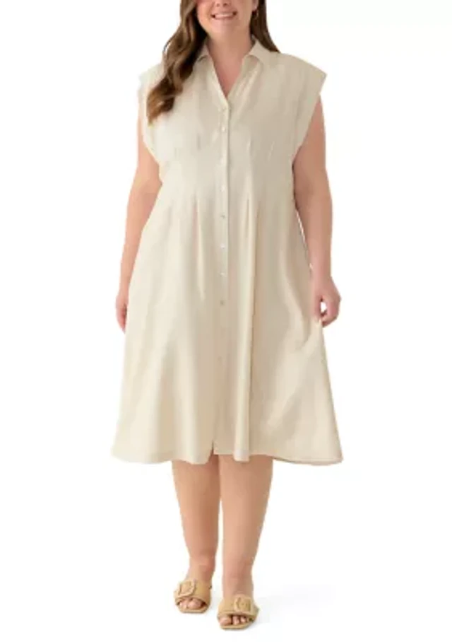 Plus Long Sleeve Pleated Mini Dress