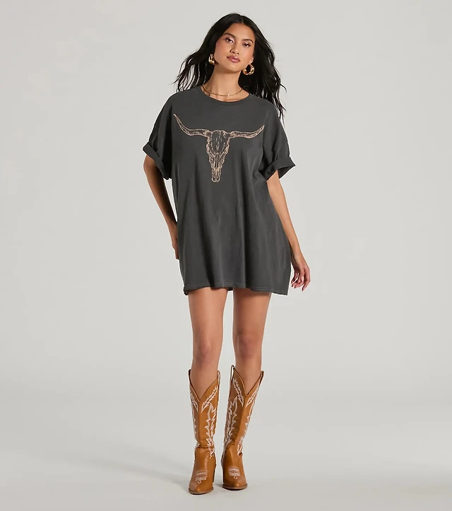 Rocker Babe Rhinestone Fishnet Graphic Tee