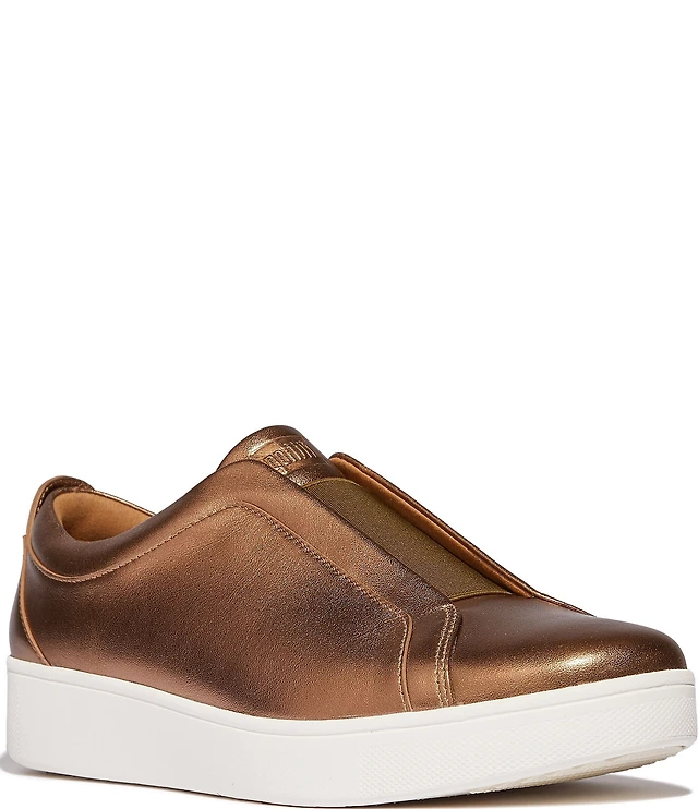 FitFlop Rally Elastic Metallic Leather Slip-On Sneakers