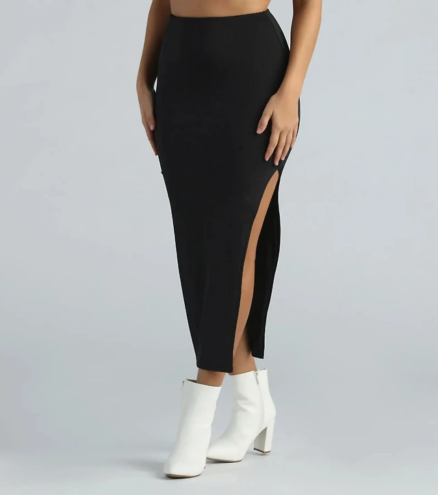Elevated Era Ribbed Knit High Slit Midi Skirt