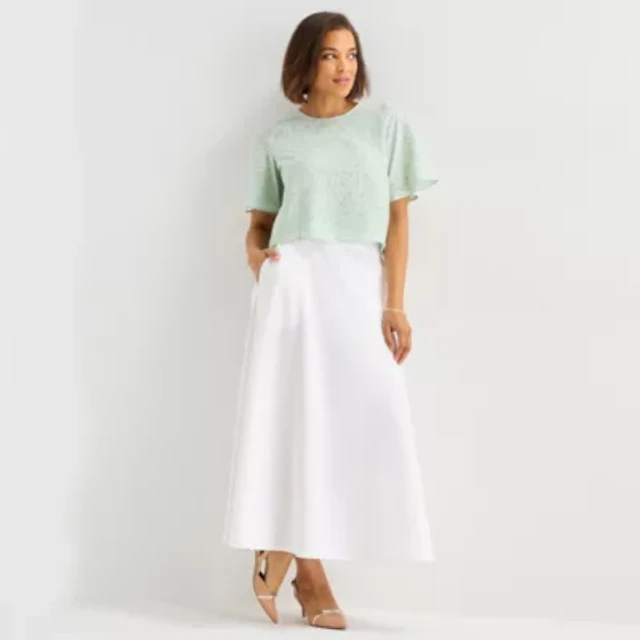 24seven Comfort Apparel Womens Plus Mid Rise Long A-Line Skirt