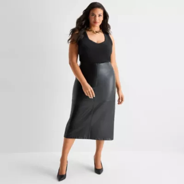 a.n.a Womens Tall High Rise Long Faux Leather Pencil Skirt